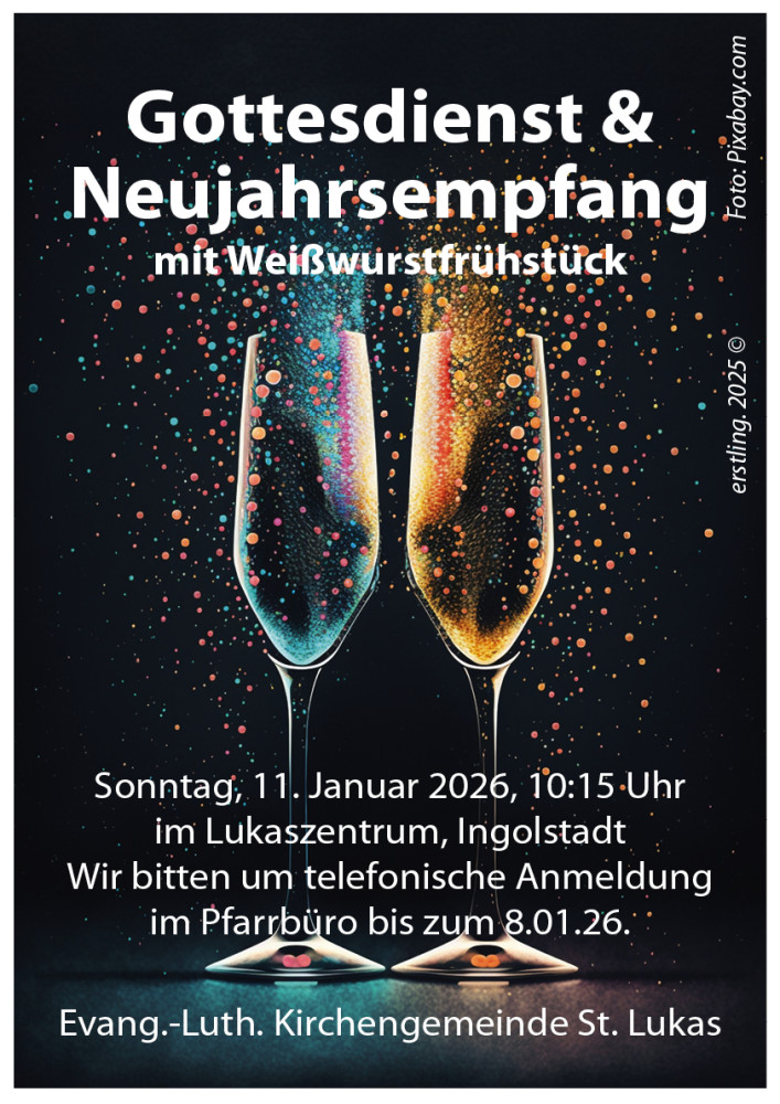 Wir heißen Sie herzlich willkommen auf den Internetseiten der Kirchengemeinde St. Lukas und grüßen Sie mit der Jahreslosung für 2026: "Gott spricht: Siehe, ich mache alles neu!" (Offb. 21,5) Ihre Pfarrer Andreas Erstling und Dr. Victor Linn.