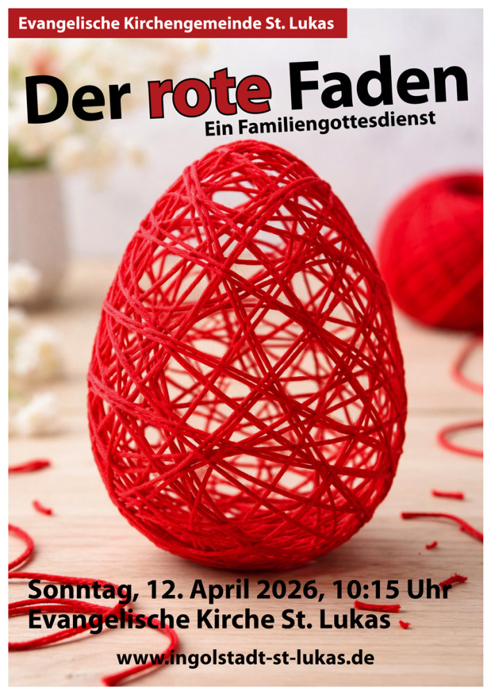 Um Ostern und die Auferstehung Jesu Christi dreht sich ein fröhlicher Familiengottesdienst am 12. April 2026 um 10:15 Uhr in der Kirche St. Lukas. Groß und Klein, Alt und Jung sind ganz herzlich willkommen mit uns einen abwechslungsreichen Gottesdienst zu feiern.